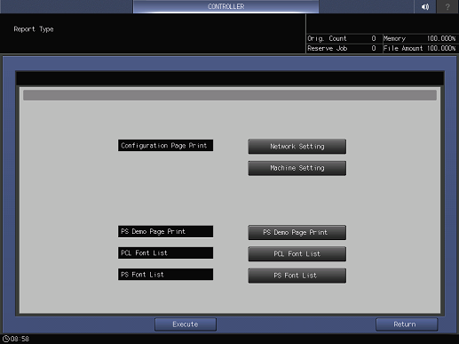 Outputs a list of Network Setting and Machine Setting.