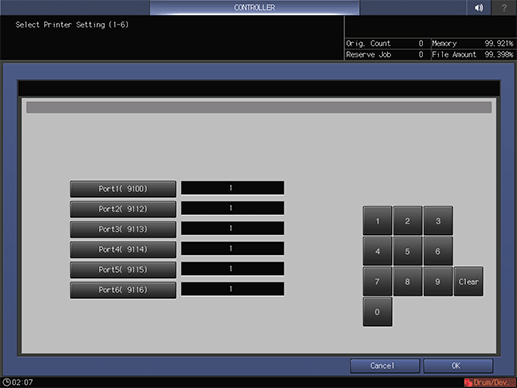 Port1(9100) to Port6(9116) | Specifies output for each port (Setting Number 1 to 6). Inputs a port number and press OK. To cancel the change, press Cancel. |