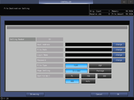 Press Browsing on the File Destination Setting screen.