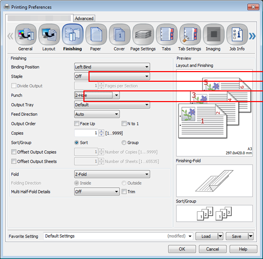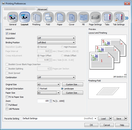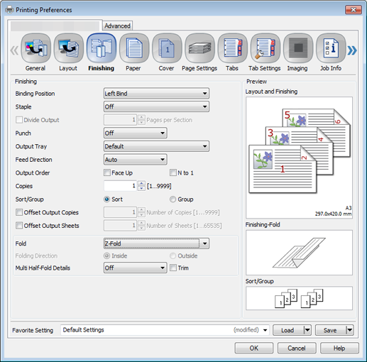 The following items can be set in the Finishing tab.