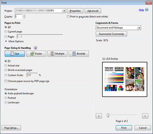 Also, set the following on the Print window of Application.