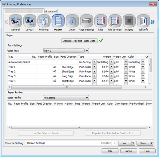Click the Paper tab, and then click Acquire Tray and Paper Data.