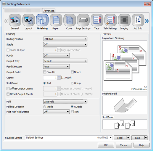Click the Finishing tab, and then set Fold and Folding Direction.