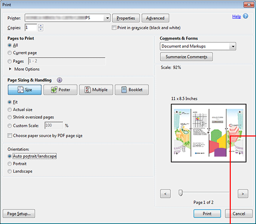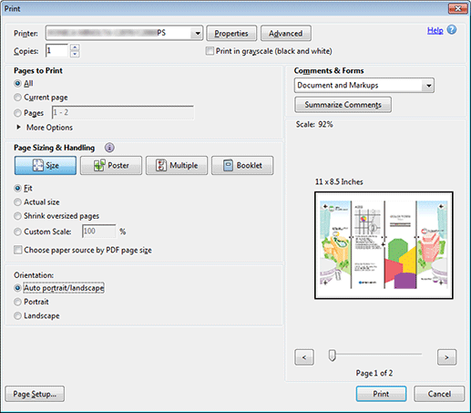 Also, set the following on the Print window of Application.