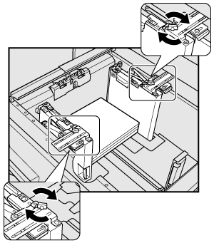 Turn the two side guide fixing knobs of the side guide plates clockwise to fix the guides.