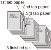 Example: 3 tab papers are inserted into each of 3 finished sets (a total of 9 tab papers)