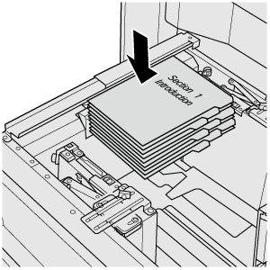 For example, when the tray is loaded with a set of 5 sheets (with 5 tabs) and only 3 sheets are used, the machine operates as shown below.
