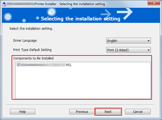 • supplementary explanationIn the language display box, you can change the language used with the installer as required.
