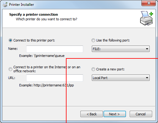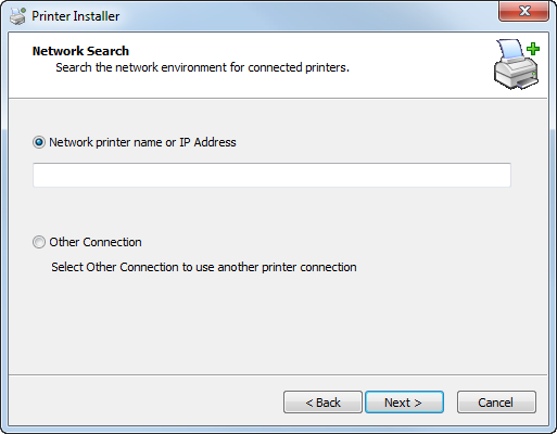 • supplementary explanationIf selecting Network printer name or IP Address, click Next to go to Step 6.