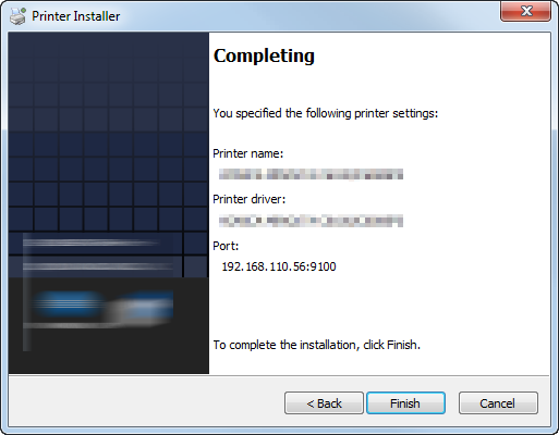 • supplementary explanationYou can confirm the installed items and settings on Installation Completed screen.