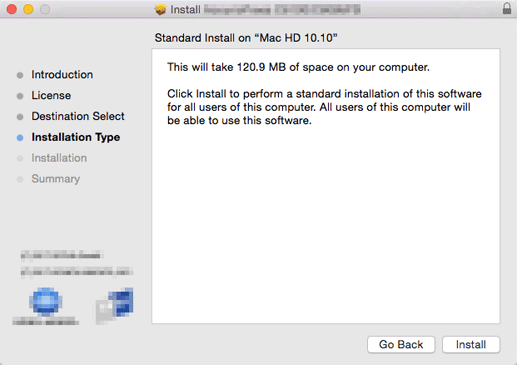 6. Click Continue following the instructions on the windows that follow until the Installation window is displayed.