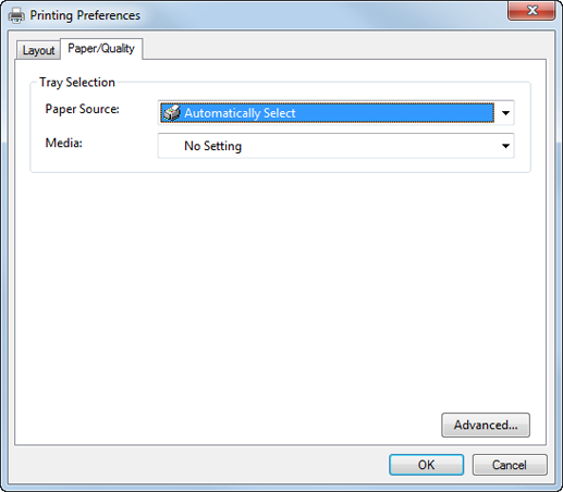 Paper Source | Automatically Select, Tray 1, Tray 2, Tray 3, Tray 4, Tray 5, Tray 6, Tray 7, Tray 8, Tray 9, Tray 10, Tray 11, Feeder | Select a paper tray. |