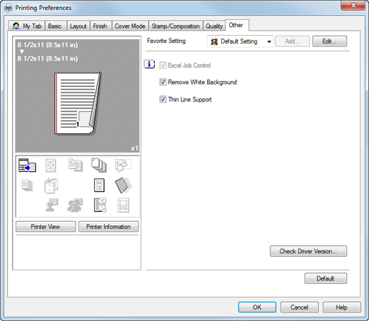 • You can change the Excel Job Control setting only when the printer driver setting dialog is displayed in Devices and Printers or Printers.