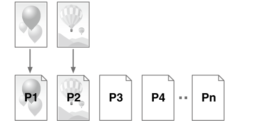 When a form has two pages, form page 1 is assigned to the first page of the job, form page 2 to the second page of the job, and form page 1 to the third page again as shown below. This pattern is repeated.
