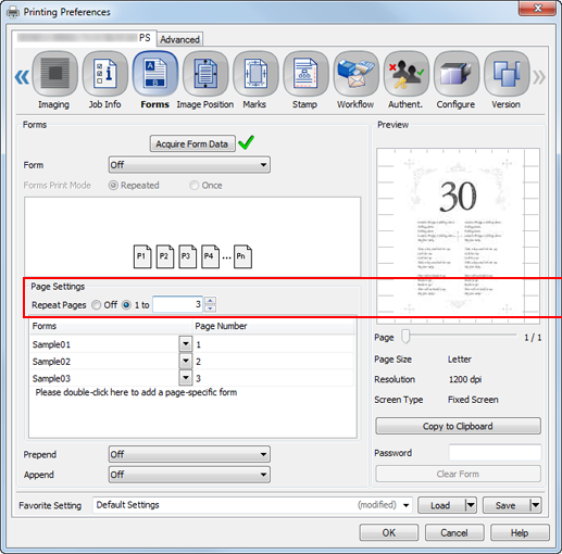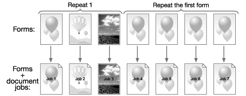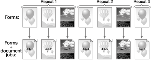 supplementary explanationRepeated: Superimposes a form on each page of a job to repeat printing. Only one or two pages can be set to a form.