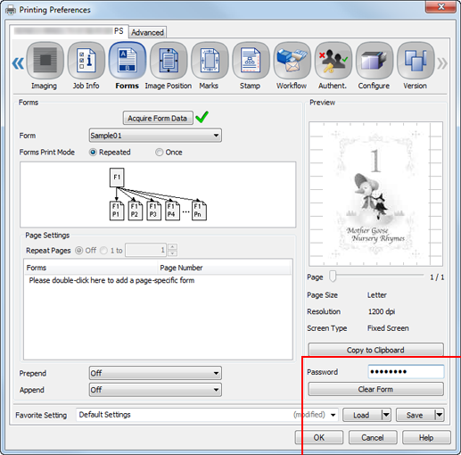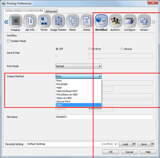 supplementary explanationTo name the selected form, enter the desired file name in File Name. If File Name is blank, the file name of the document to be printed is displayed.