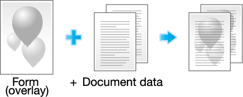 This machine enables you to recall the desired form and print document data over the form (Superimposition).