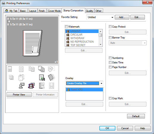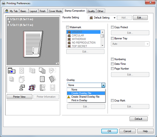 supplementary explanationOverlay Printing Setting: Changes the method to superimpose an overlay.