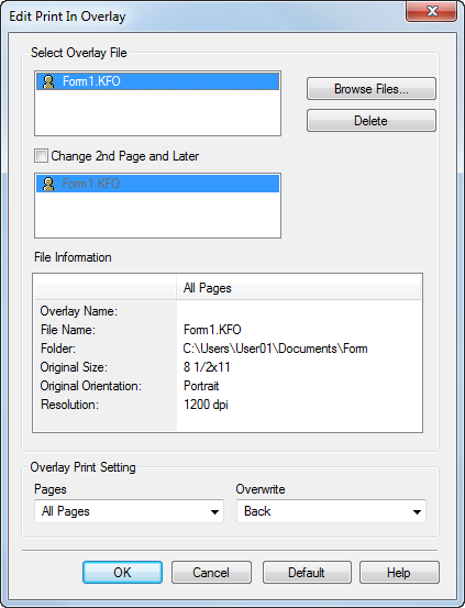 supplementary explanationChange 2nd Page and Later: Changes the overlay to be superimposed on the second page and subsequent pages of the document.