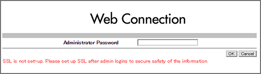 supplementary explanationTo ensure the security of the data in the administrator mode, make the SSL setting. The SSL setting is included in the Security tab settings. For details, refer to PKI Settings: SSL Setting.