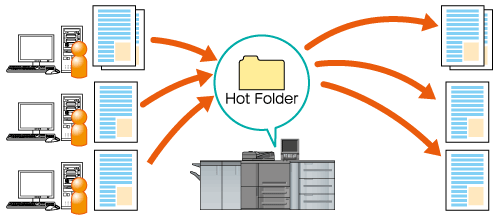 Using the Hot Folder of the machine allows you to directly print a PDF or TIFF file without starting an application or installing Hot Folder.