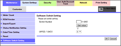 Click Software Switch Setting on the menu of the Maintenance tab to display this screen.