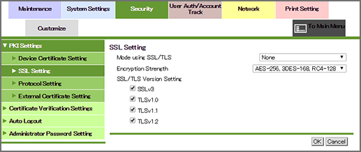Click PKI Settings - SSL Setting on the menu of Security tab to display this screen.