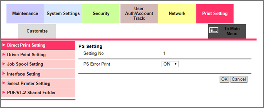 This setting can be made also from Controller on the MACHINE screen. For details about the setting, refer to PS Setting.