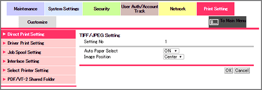 This setting can be made also from Controller on the MACHINE screen. For details about the setting, refer to TIFF/JPEG Setting.