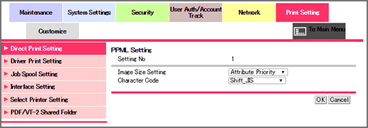 This setting can be made also from Controller on the MACHINE screen. For details about the setting, refer to PPML Setting.