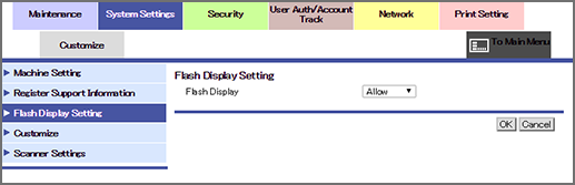 Click Flash Display Setting on the menu of System Settings tab to display this screen.
