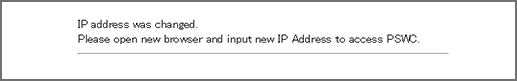If you have changed the IP address or IP Address Setting Method, the following screen is displayed.