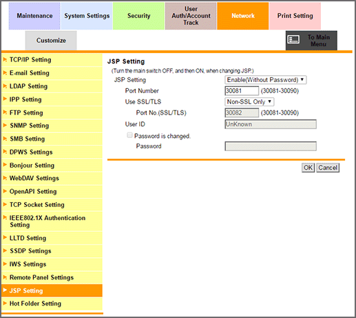 To enable the JSP setting, select Enable from the JSP Setting drop-down list.