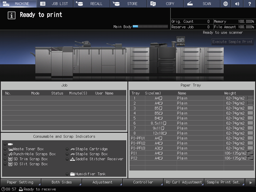 On the touch panel of the main body, press SCAN.