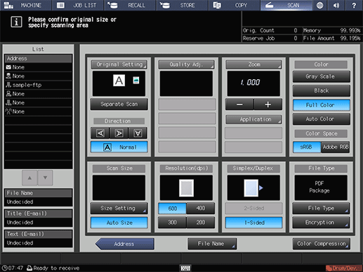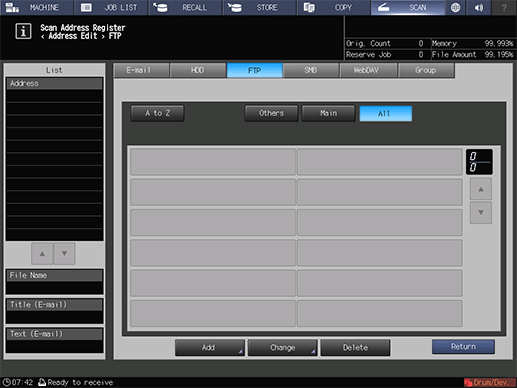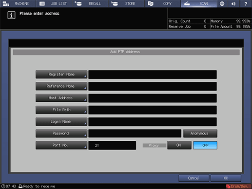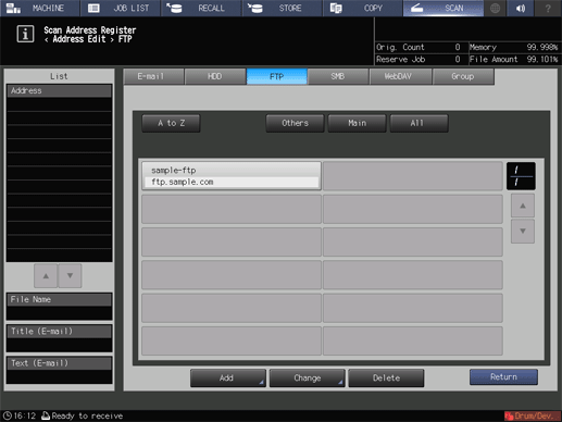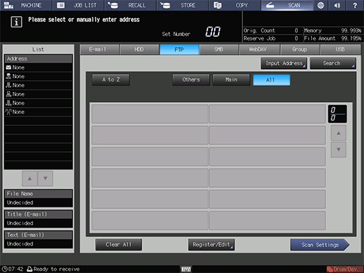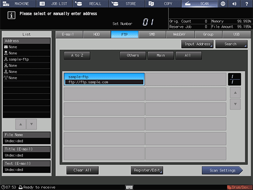supplementary explanationAfter pressing SCAN, press FTP to display this screen.