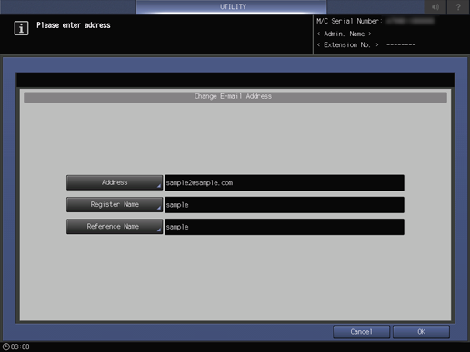 1. Follow the procedure on Registering a Destination and a Subject and a Message of E-mail to display the Scan Address Register Menu screen.