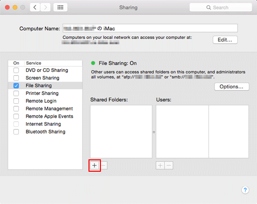 Select the folder you want to share. Click + at the bottom of the Shared Folder list, select a folder to be shared, and click Add.