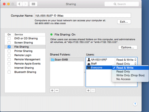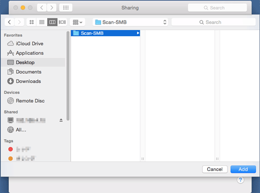 Example: A folder named Scan-SMB is created on the desktop of Macintosh (Mac OS X 10.10).
