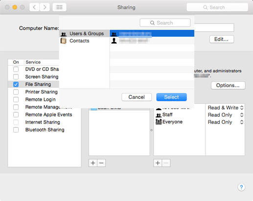 Click + at the bottom of the Users list, select a user or group you want to permit access to, and click Select.