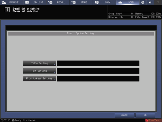 Press Option Setting to configure Title Setting, Text Setting, and From Address Setting for the E-mail.