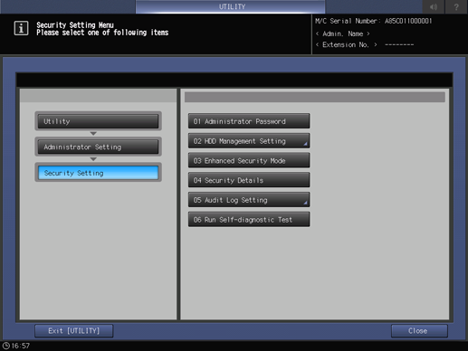 Press Security Setting on the Administrator Setting Menu screen and then press Security Details.