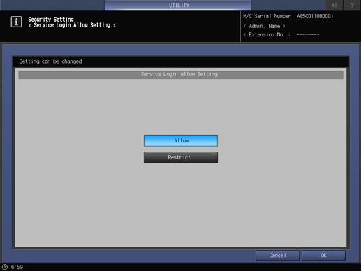 The Service Login Allow Setting screen is displayed.