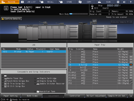 If the specified tray runs out of paper, the machine stops temporarily.