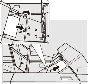 Turn the knob [PB14] to the left, and remove the paper jammed in the inlet of the conveyance unit.