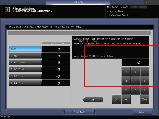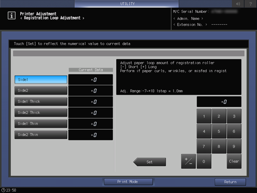 7. If any adjustment is required, press Exit PrintMode to return to the Registration Loop Adjustment screen.