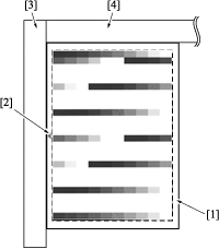 supplementary explanationPosition the arrow mark 2 of test pattern 1 at left, and face the print side downward.