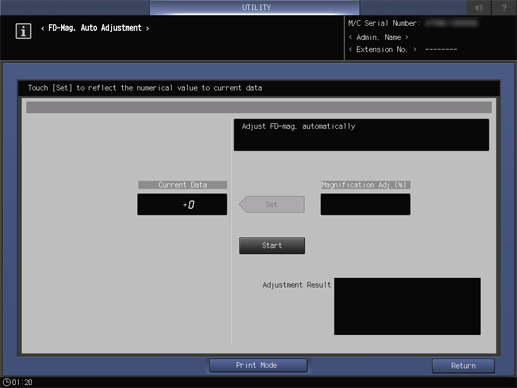 2. Press System Setting on the Administrator Setting Menu screen, and then press Expert Adjustment, ADF Adjustment, and FD-Mag. Auto Adjustment in sequence.