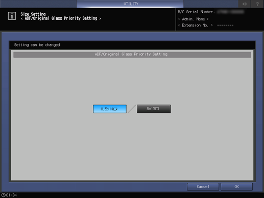 2. Press System Setting on the Administrator Setting Menu screen, and then press Size Setting and ADF/Orig. Glass Priority in sequence.