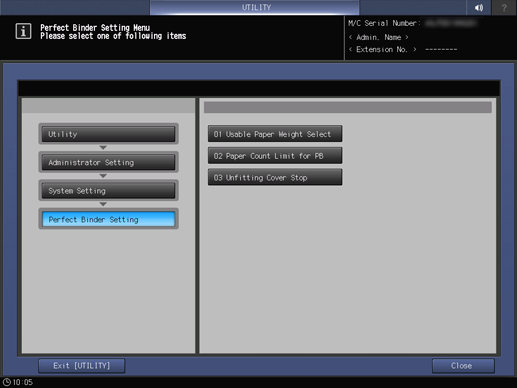 In either case, the screen returns to the Perfect Binder Setting Menu screen.