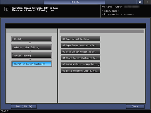 Press System Setting on the Administrator Setting Menu screen, and then press Operation Screen Customize and Store Screen Customize Set in sequence.